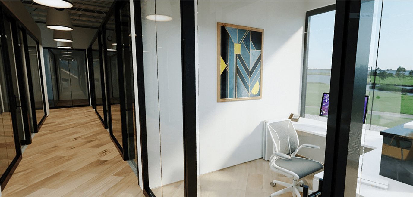 - Interactive Fly-Throughs: Developed a navigable virtual model of the entire office, enabling stakeholders to “walk” the space and experience the flow and functionality firsthand.