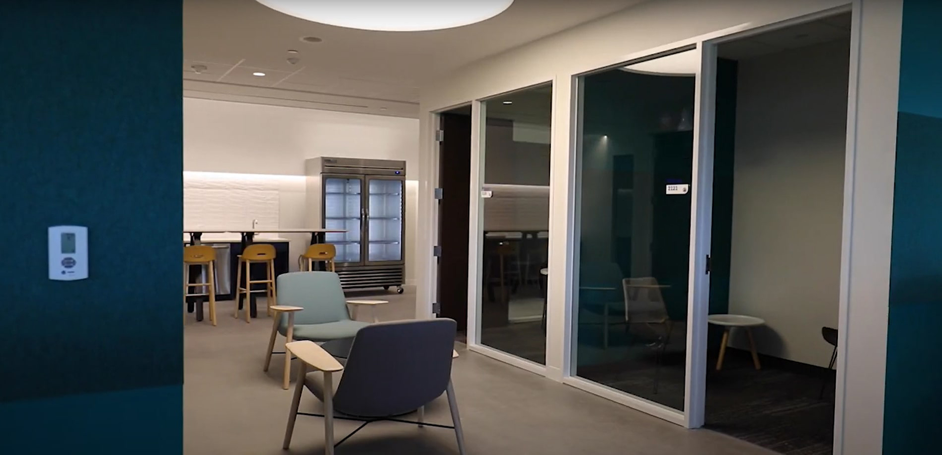 - Inspirational Elements: Incorporated branded graphics and writable surfaces throughout to celebrate the company’s mission and fuel ideation.